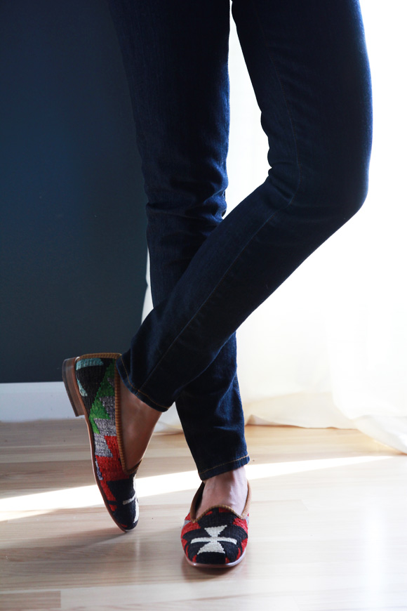 GET THE LOOK: J.Crew tank | J.Crew jeans | Kilim Arts slippers (similar) | H&M horn necklace (similar)